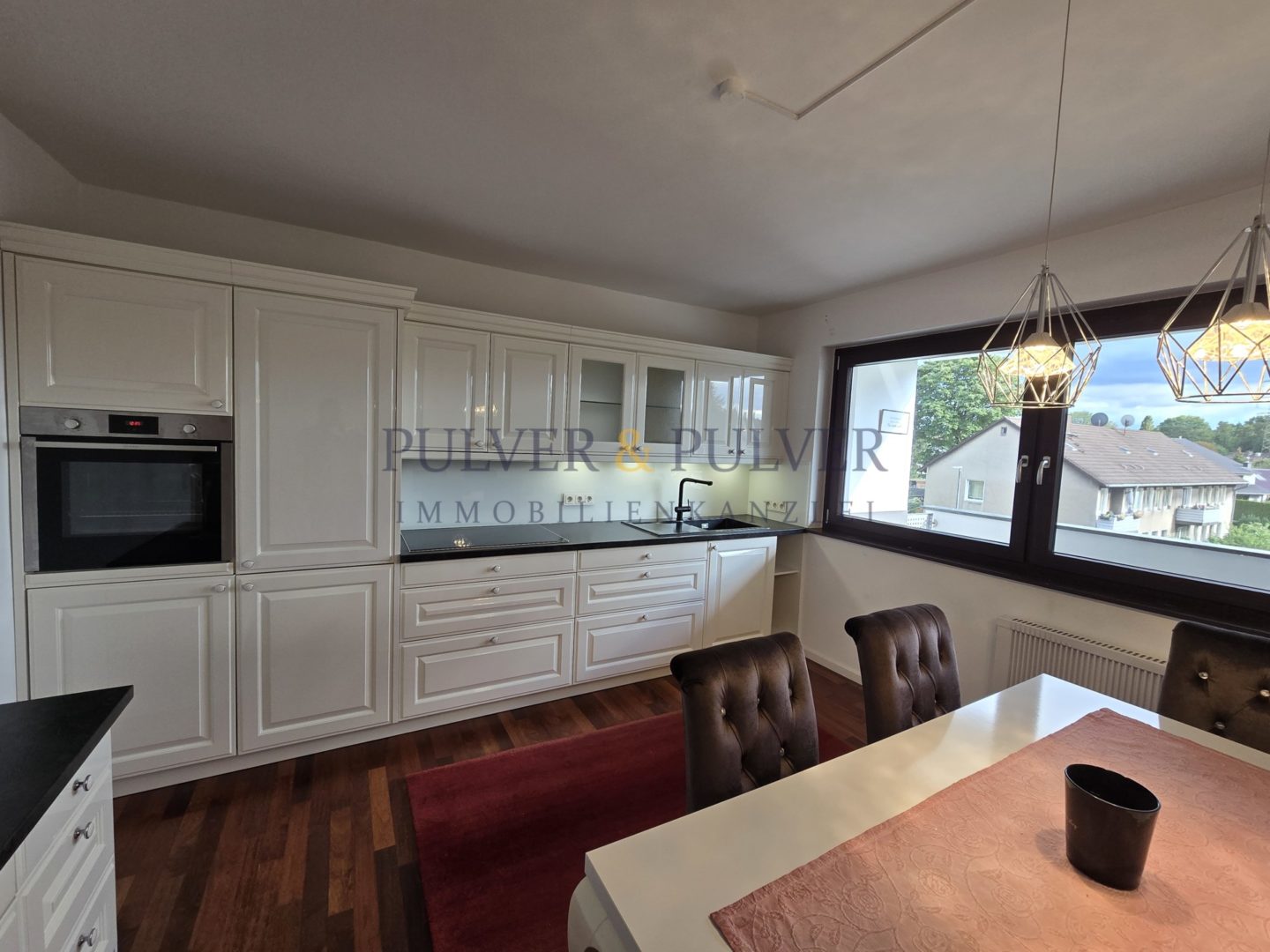 Klare Linien, hochwertige Materialien und eine komplett ausgestattete Küche mit Esstisch & Stühlen.