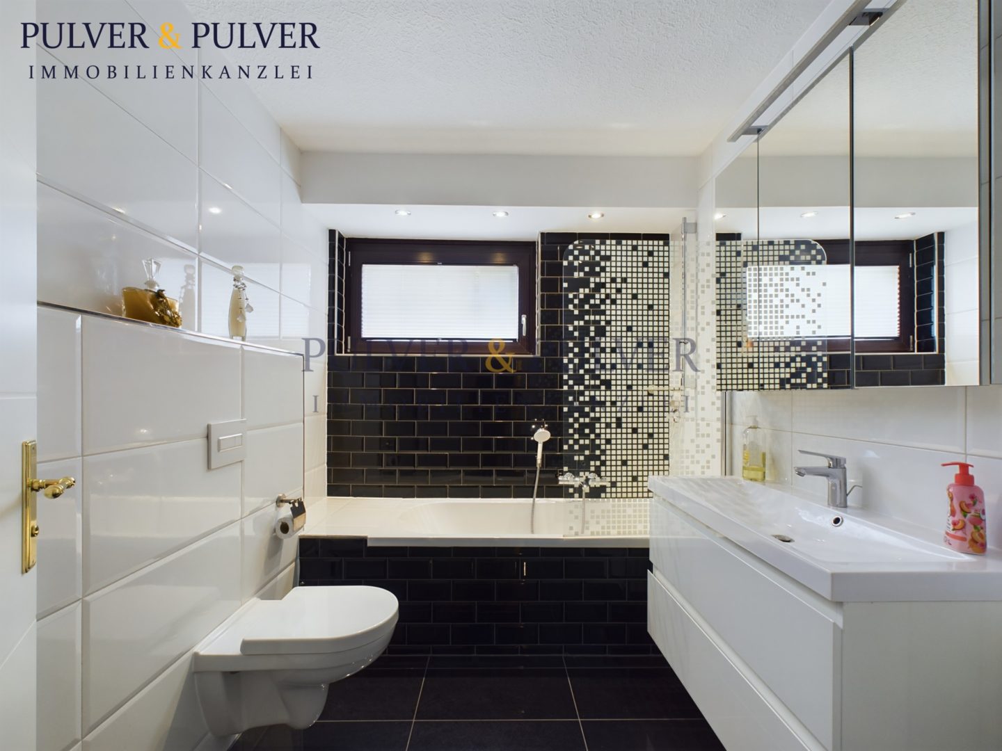 Besonders hervorzuheben ist das stilvolle Badezimmer. Auch hier sind bereits alle Badmöbel in Hochglanzoptik montiert. Ästhetik und Funktionalität treffen aufeinander.